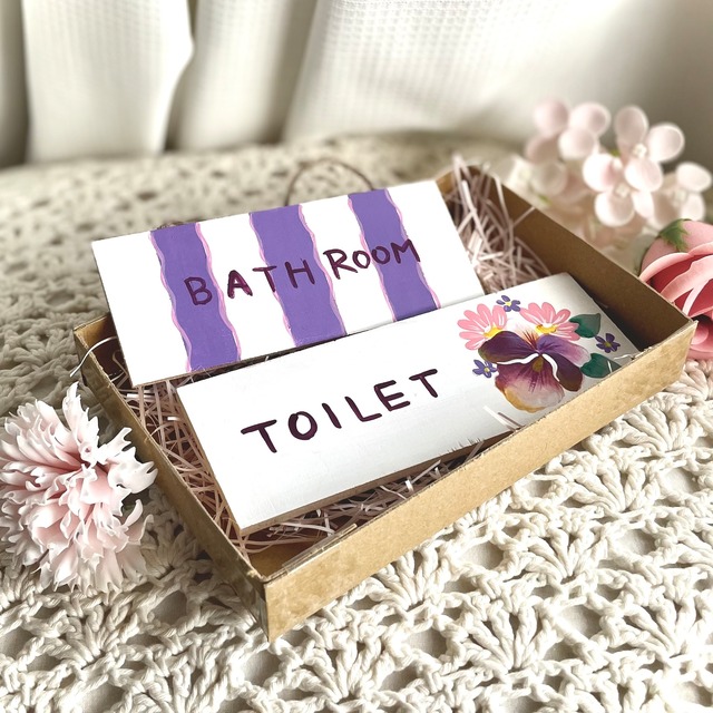 (送料無料)~花あかり バス&トイレサイン トールペイント インテリア小物 木製品 雑貨