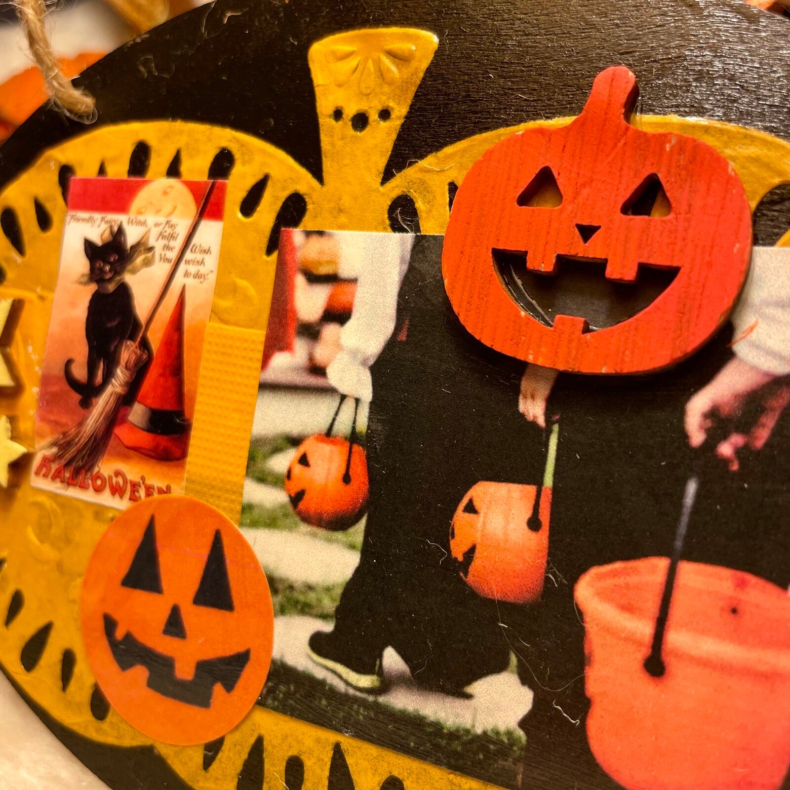 4枚のビンテージ風のハロウィンステッカーを貼りました