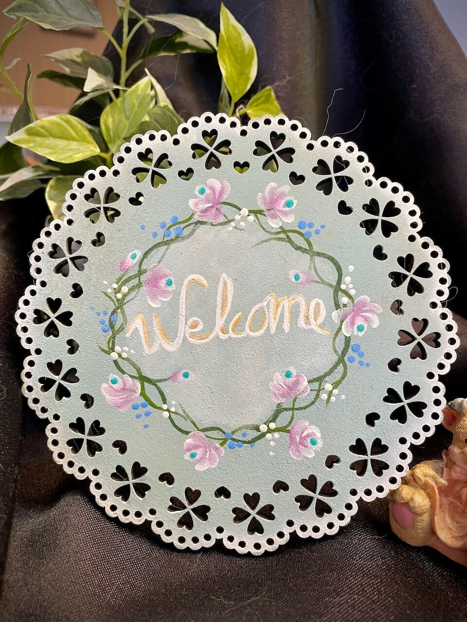 手作りの温かみと華やかなスカラップのふちどが、お客様をお迎えする素敵な雰囲気を演出します。